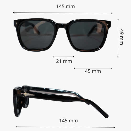 Diseño atemporal con carácter y elegancia. Su armazón negro brillante y forma cuadrada ofrecen una presencia fuerte y equilibrada, ideal para quienes buscan un estilo clásico con un toque moderno. Los detalles metálicos en las varillas añaden distinción y refinamiento sin perder sobriedad.